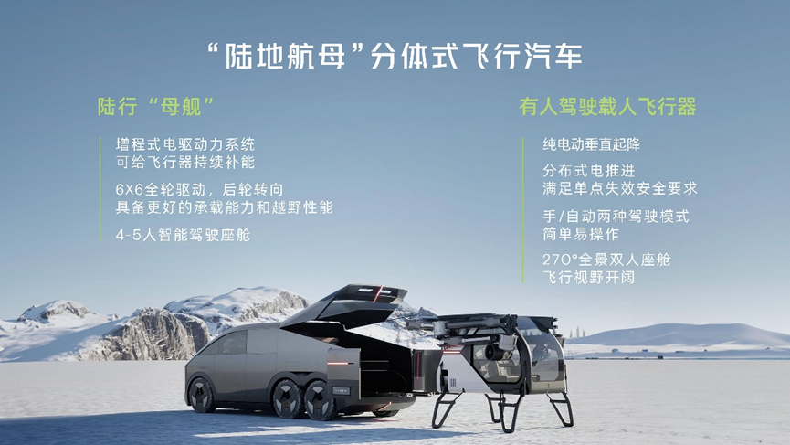 同时,广州汇天航空航天科技有限公司(简称“小鹏汇天”)联合创始人、副总裁王谭宣布,另一款“陆地航母”分体式飞行汽车将于今年四季度开启预订,并计划2025年四季度开始量产交付。该产品将由陆行体和飞行体两部分构成,陆行体可将飞行体完全收纳至车内,并给飞行体持续补能。