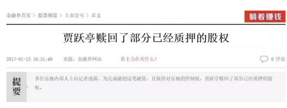 1. 贾跃亭把手头已解禁的乐视网股份都卖了,一股不剩