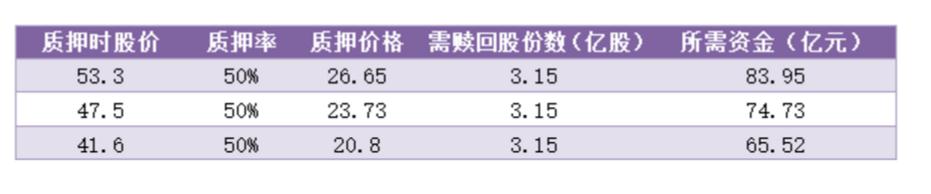 我们用更保守的50%的质押率估算的赎回质押股票需要的资金是65.52亿到83.95亿。