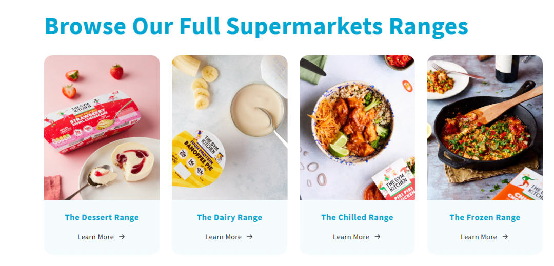 当下,通过聚焦健身人群,The Gym Kitchen的产品范围已经从预制菜产品(冷藏与冷冻系列)拓展到适合健身人群吃的甜点、乳品、外带零食、谷物和扁豆系列,产品的线下销售也走向了各大英国头部商超, Tesco、Sainsbury's、Co-Op、Morrisons 和 Ocado 以及爱尔兰的 Dunnes......
