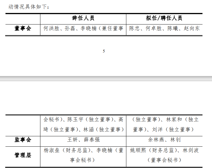 目前,新任财务总监姚顺熙、董事会秘书林剑波已正常履职,其他提名人员在完成相关审议程序后履职。