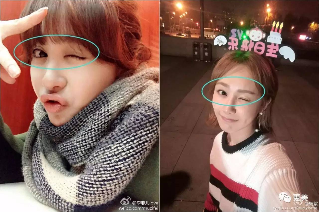 这张挤眼照实在是如出一辙,连右眼眼角的上翘都很像。不过所长觉得,李菲儿这张根本就不像本人,如果不是水印打着“李菲儿love”,我就直接以为这是杨紫了。