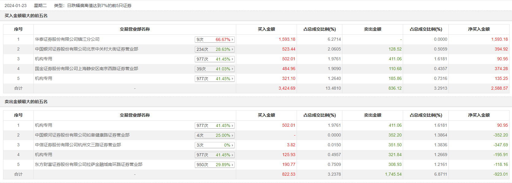 1月23日,华茂股份今日跌停,全天换手率7.21%,成交额2.54亿元,振幅8.11%。龙虎榜数据显示,机构净买入30.29万元,营业部席位合计净买入1544.32万元。深交所公开信息显示,当日该股因日跌幅偏离值达-10.95%上榜,机构专用席位净买入30.29万元。统计显示,上榜的前五大买卖营业部合计成交5915.80万元,其中,买入成交额为3745.21万元,卖出成交额为2170.60万元,合计净买入1574.61万元。