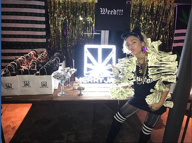 1月15日,麦粒(Miley Cyrus)为她的男朋友锤弟(Liam Hemsworth)举办了一场以大麻为主题的生日派对。活动中成袋的大麻均由“大麻公司”(The Cannabis Company)提供,这家公司是由狗叔(Snoop·Doggy)在2015年一手创建,为此麦粒还特地感谢了狗叔,一个带有“Weed(大麻)”标识出现在当天的夜店现场。