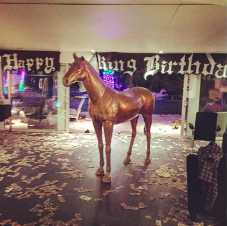 当天晚上,Wayne Coyne(The Flaming Lips乐队主唱)还在自己的社交媒体上发了一些派对的照片,照片中有“最棒的派对”字样的热气球,也有模型马,还有散落一地的百元账单。麦粒和锤弟的朋友凯蒂·薇芙(Katie Weaver)也在派对结束之后发了一张锤弟的酣睡照片。