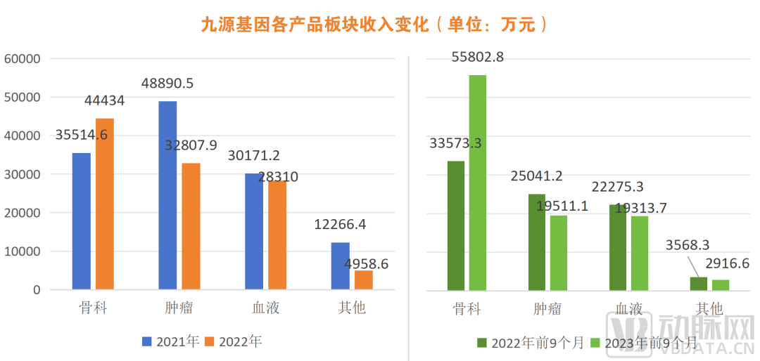 不难发现,九源基因各产品板块目前除了骨科产品的销售额在快速增长外,其他产品的增长比较乏力。