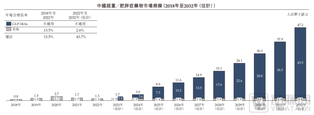 (中国超重/肥胖症药物市场规模 图片来源:招股书)