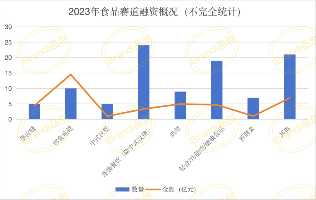 据iBrandi品创不完全统计,2023年,食品相关赛道共发生102起投融资项目,金额超40亿元,其中18起未披露具体金额。