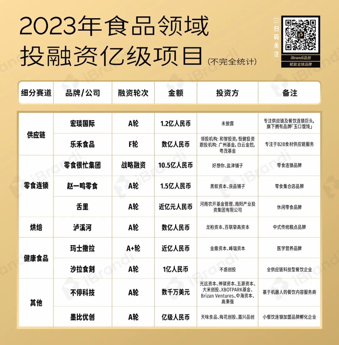 在iBrandi品创看来,对于2024年的食品赛道,“故事性”、“概念性”的项目只会越来越少,健康是现在也是未来。此外,除了备受青睐的供应链企业,科技、信息平台也在2023年成为了香饽饽。