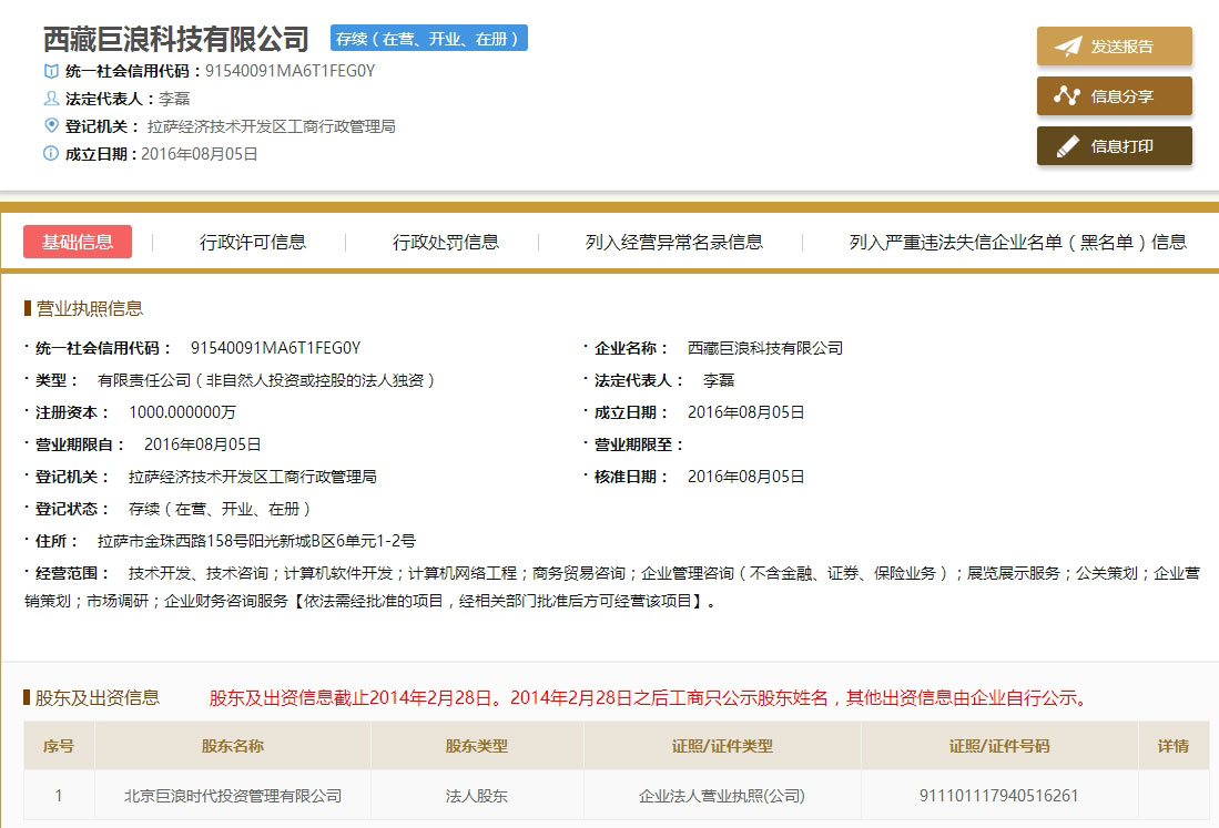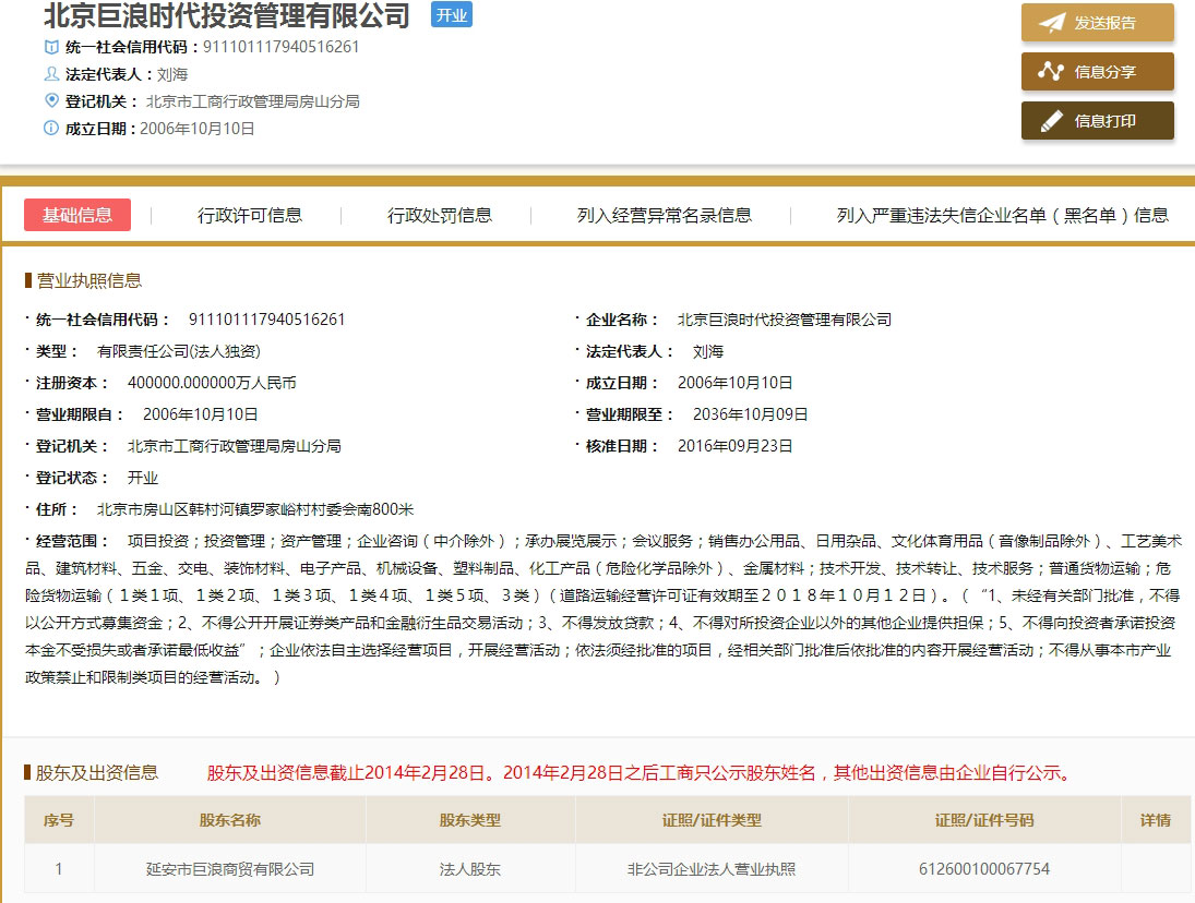 另外,延安巨浪的成立时间也恰好在熊猫金控剥离北京熊猫前不久——2015年5月4日。也就是说,由疑似熊猫金控前董事担任实际控制人的延安巨浪,从“中间人”泰兴烟花手中接过了熊猫金控剥离的公司,并将其改造为投资公司北京巨浪,旗下的西藏巨浪目前已经在二级市场开展增持、举牌。