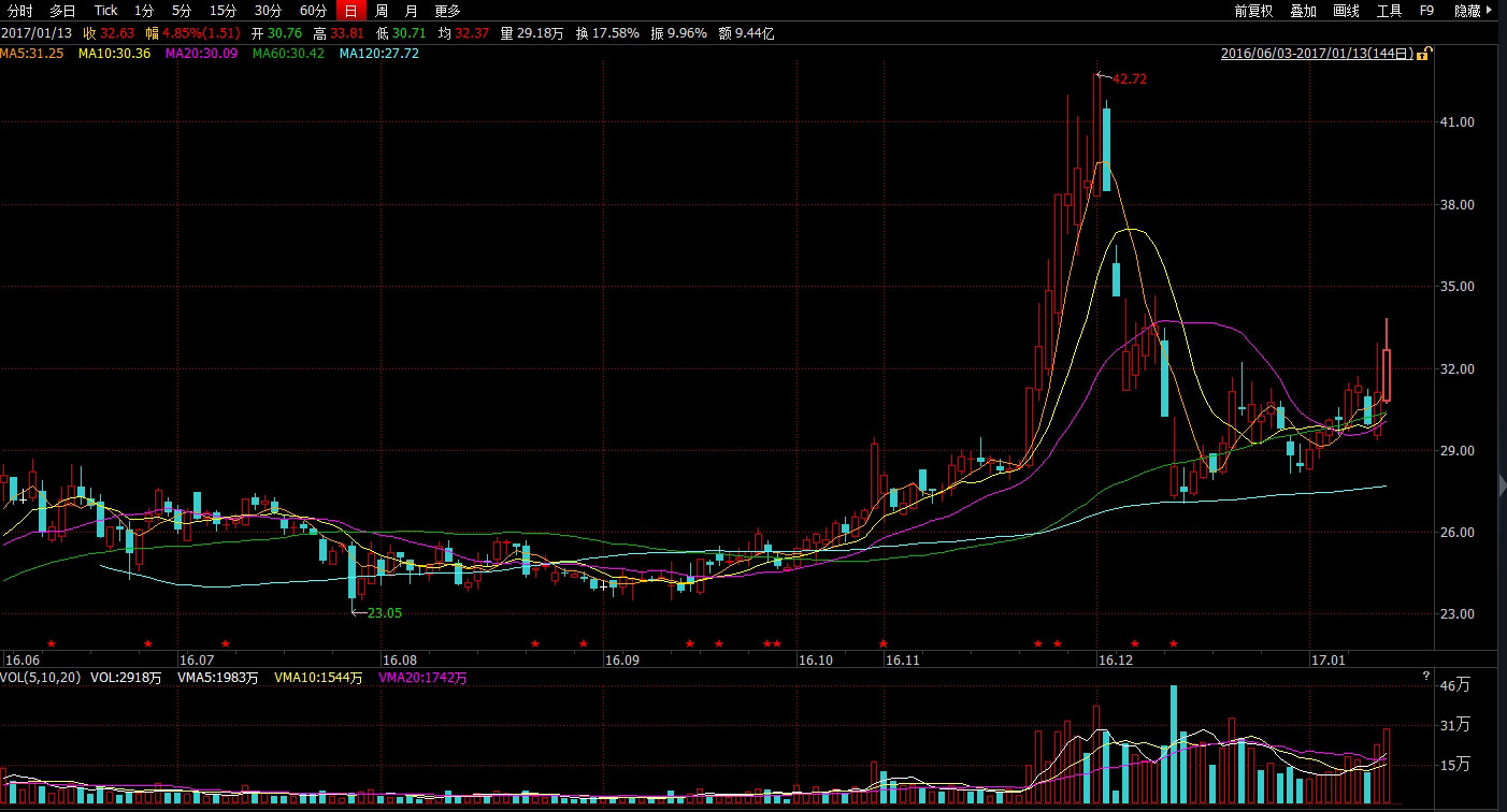 截至1月13日收盘,浪莎股份的总市值为44.28亿元。界面新闻记者注意到,2016年12月28日的公告显示,浪莎控股所持有96.40%的浪莎股份(4000万股)已被质押。也就是说,浪莎股份在市场上可任意交易的股票市值最多只有约25亿元,可以视为“小盘股”。
