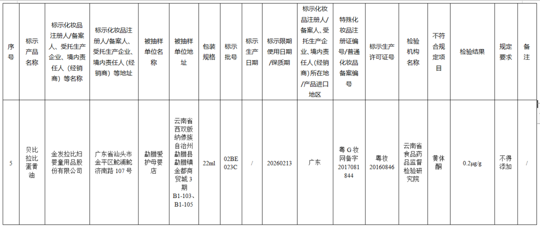 值得注意的是,抽检结果中,多次出现婴童化妆品违规添加现象,添加违禁成分涵盖糖皮质激素、抗生素、抗真菌、抗过敏药物。如10月,国家药监局通报7批次化妆品检出禁用原料,包括含有黄体酮的“贝比拉比蛋黄油”,被誉为“母婴第一股”的金发拉比遭遇“滑铁卢”,停产整改并被罚款260万。