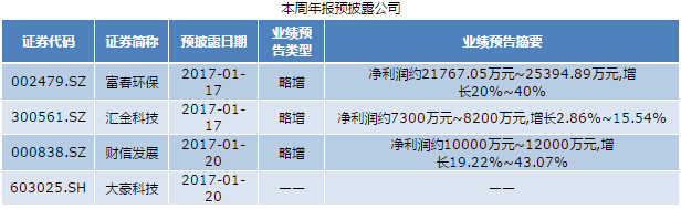 富春环保、汇金科技将作为深交所首批发布年报的公司计划于1月17日披露业绩。
