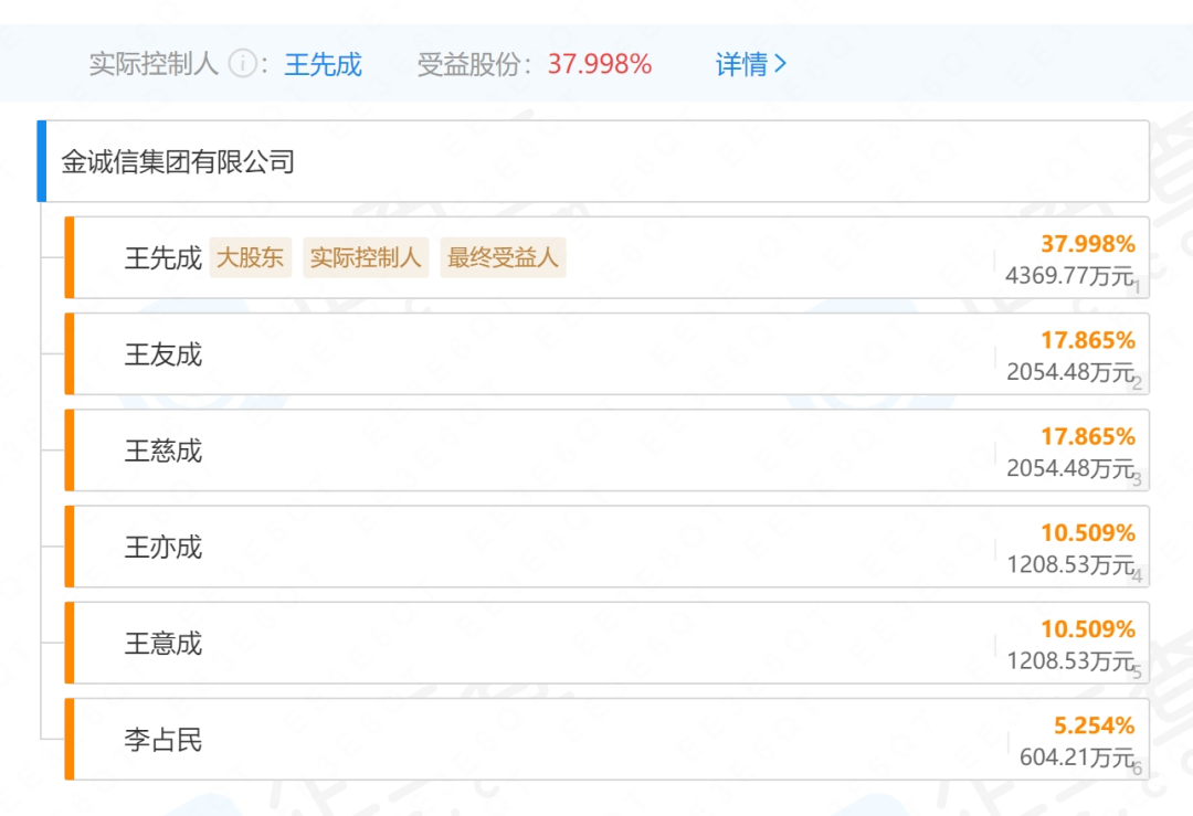 截至2023年三季度,金诚信大股东为金诚信集团,持有上市公司40.28%的股份,而金诚信集团的股东只有6个自然人,分别是王先成和他的四个同胞兄弟王友成、王慈成、王亦成、王意成,以及李占民。