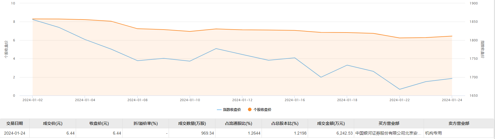 1月24日,银江技术今日大宗交易成交969.34万股,成交额6242.53万元,占当日总成交额的29.84%,成交价6.44元,较市场收盘价持平。