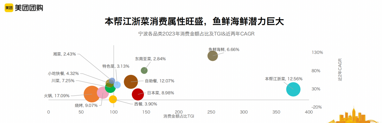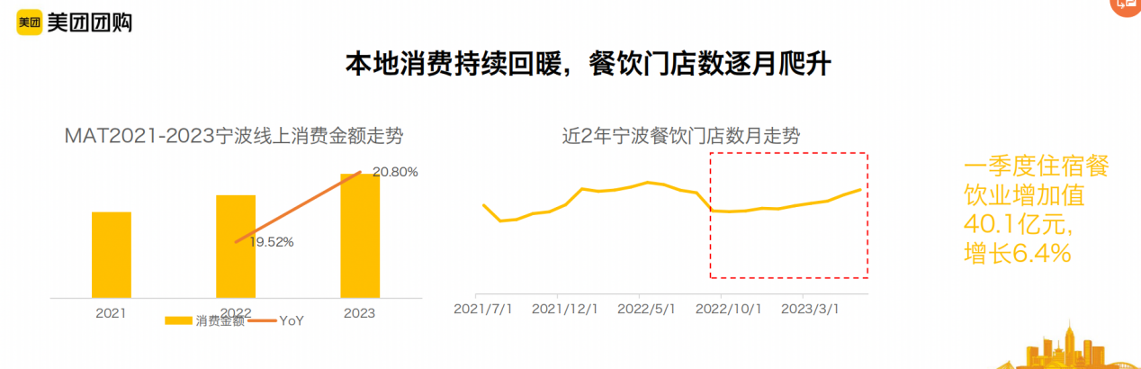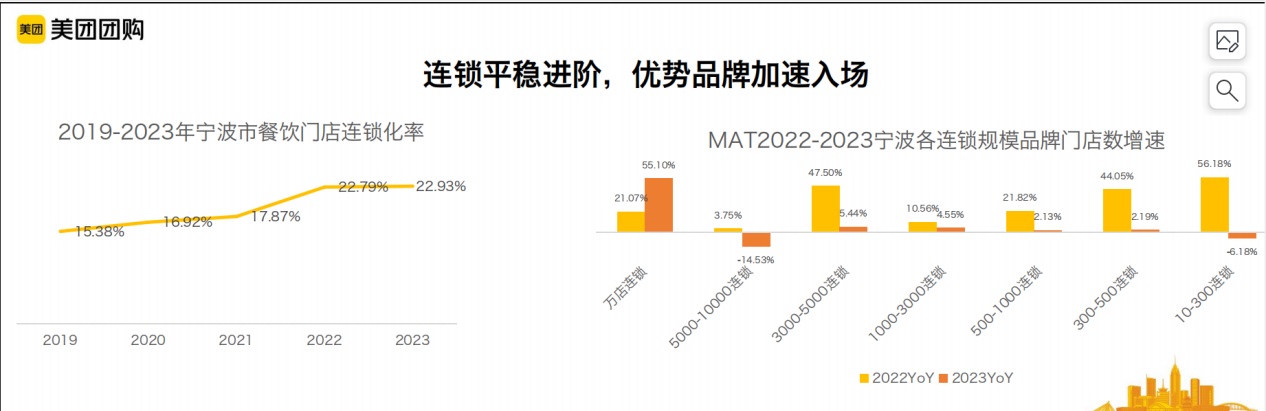 现场,美团到餐中客宁波城市负责人毛温馨作出了主题为《数观餐饮新趋势》的发言,她结合2021-2023年美团大数据指出,宁波本地消费持续回暖,餐饮门店数量逐月爬升;连锁店平稳进阶,优势品牌加速入场,“同时值得关注的是,2023年,宁波的本帮浙菜消费属性旺盛,鱼鲜海鲜潜力巨大。”