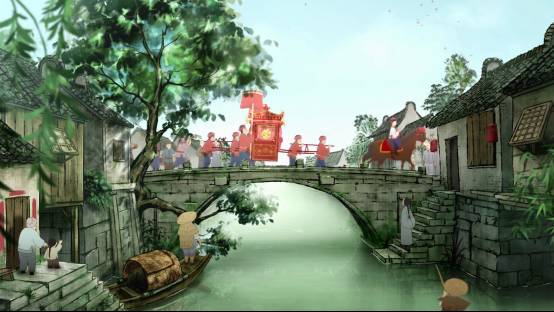 除了画风精致有新意,短片的制作也非常精良。动画中的每一个场景展现的都是王初桐的故乡——嘉定方泰旧时的样貌,随手一截便是一幅美如画的江南图景。人物的服装、造型、物件更是尽量做到有史可据。这些细节让不少观众感叹这是一部“良心之作”。