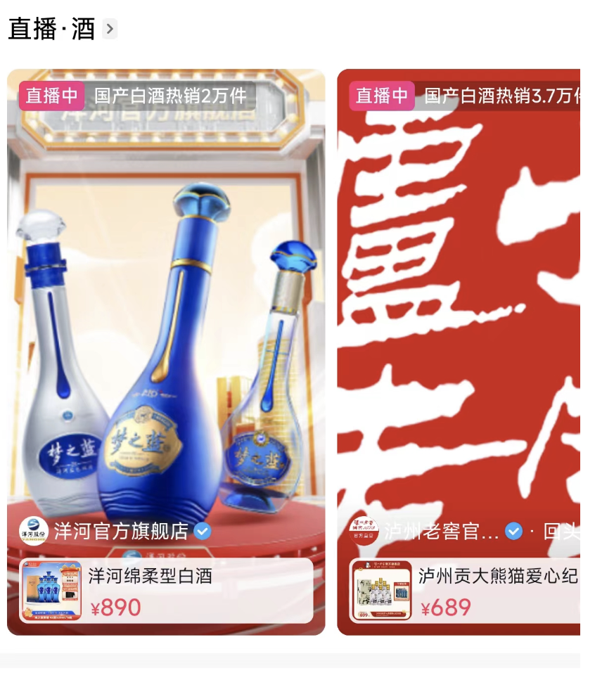 “这瓶酒平日标价899元,现在年货节,我们给到699元。过年买回家高端礼赠,自己喝请客招待,都合适。”在充满过年气氛的抖音某酒水直播间内,主播在《恭喜发财》的背景音乐中,喜气洋洋地介绍着自家产品。