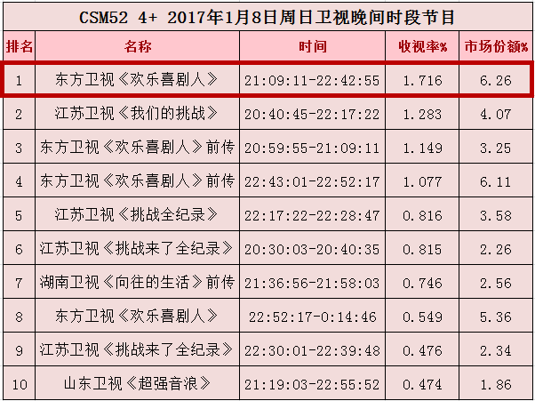 经历了去年闹得沸沸扬扬的“离婚”事件后,1月8日,《欢乐喜剧人》第三季在东方卫视如期播出。CSM52城收视率达1.7,成为当晚同时段综艺节目收视第一。在第二季顺利坐上喜剧真人秀节目的龙头位置,并创造了同类节目难以望其项背的关注度后,《欢乐喜剧人》一度引发了各大平台喜剧类综艺的“鲶鱼效应”。