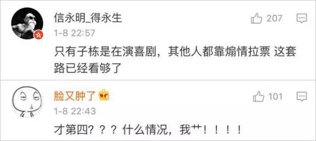 但从第一期的表现看,新喜剧人们似乎在透支观众对他们“师兄”“师姐”的喜爱,尤其是张小斐毫无来由的“煽情”桥段。整个作品进行过程中都在处心积虑安放催泪弹,尤其是当“小丑女”帮孤儿院院长挡子弹的瞬间却莫名地开始煽情。观众的情绪还没到达高潮,那些为了催泪而制作的画外音却想强行让人感动。对于这样生硬的煽情安排,网友纷纷表示失望透顶。