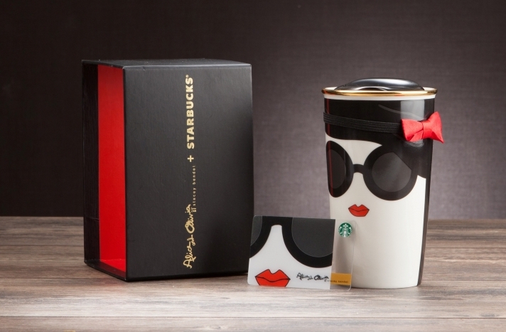 Alice + Olivia的设计风格以大胆古怪出名,它经典的元素包括了大红色的嘴唇与硕大的墨镜。把这些元素加上了星巴克马克杯上,如果没有星巴克的logo,相信没人会看出来有星巴克的影子。