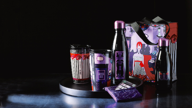 除了Alice + Olivia,星巴克还曾经与类似风格的设计师Anna Sui合作,同样推出了两款马克杯、两款与 S’well Bottle 三方合作出的保温水瓶和一个购物袋。