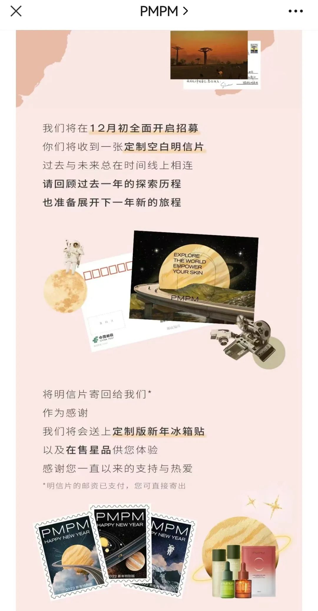 在「外向型探索者」的品牌人格下,PMPM通过一切跟消费者相关的触点和物料,不遗余力地传递和营造品牌气质,比如酷似行李箱的快递包裹并附送冰箱贴、明信片和创始人手写的一封信。
