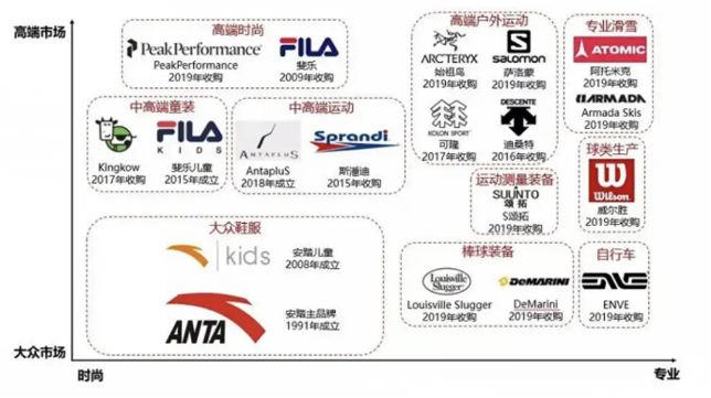 从2009年到2019年,安踏共投资超过220亿元收购了多个外国运动品牌。