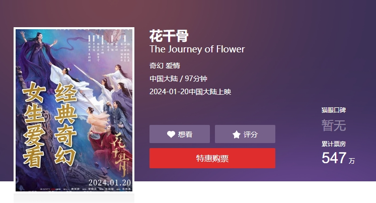 2024电影市场“开年第一烂”落到了《花千骨》头上。