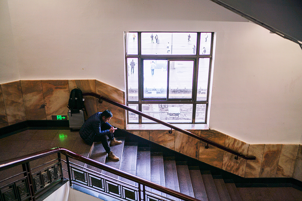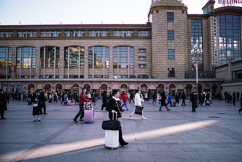 在北京站,和拎着大包小包、匆匆走过站前广场的人不同,有一些人是带着极少的行李徘徊在广场上,等候自己乘坐的列车发车。