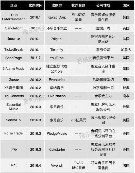 2016年,索尼花了不少时间和金钱在收购上,比如它在年初时收购了欧洲最重要的独立厂牌和艺人服务公司之一Essential Music,8月又收购了世界最大的舞曲独立厂牌Ministry of Sound……不过,索尼的收购之路并不会就此停止。