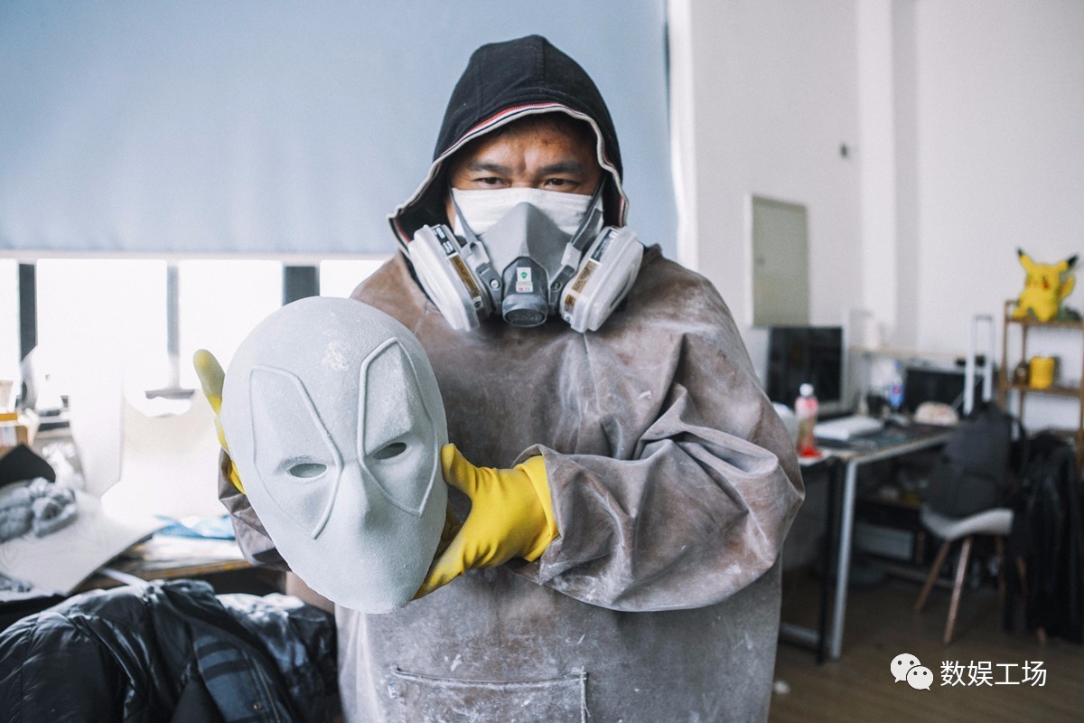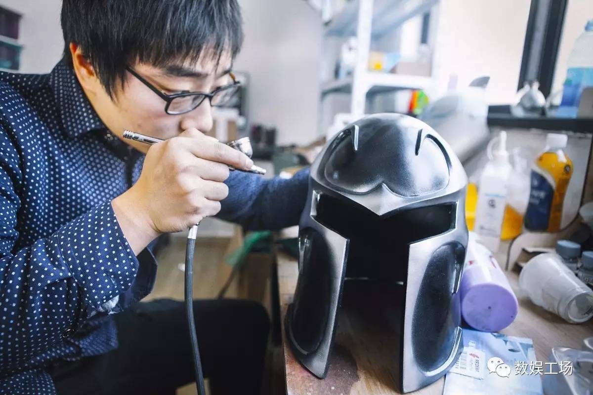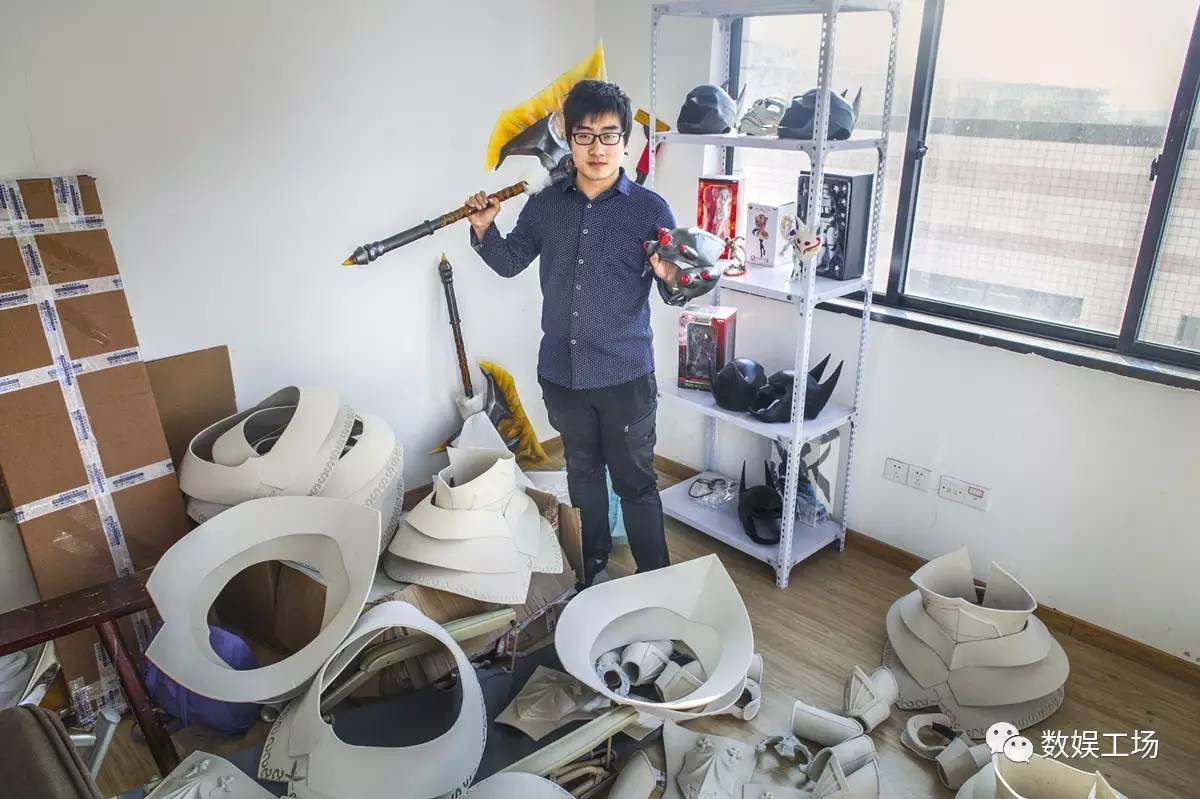 在水洪庙村见到他的时候,他为办公室的杂乱而难为情。确实,在300平方左右的办公大厅里,千奇百怪的Cosplay道具到处都是,比如,蝙蝠侠头盔、《守望先锋》中士兵76头盔、《阴阳师》中茨木童子的兽头装饰,以及叫不出名的大刀、铠甲片、翅膀,或是各种玻璃钢模具。并不严密的模具间、喷漆间里悠悠的飘出一股股刺鼻的化学用品的味道。