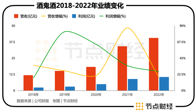 从营收收据看,2015年至2022年,酒鬼酒营收从6亿元增长至40亿元,年均复合增长率接近30%;归母净利润从0.89亿元增至10.49亿元,年均复合增长率近40%。
