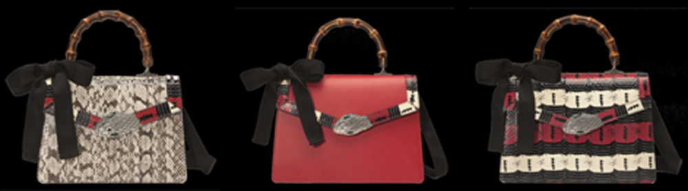 Lilith则是古代两河流域的苏美尔神话中一位法力高强的魔女,同时她也是亚当的第一任妻子,后出走伊甸园。既然以魔女命名,同样是神秘气质的Gucci珊瑚蛇自然是Lilith系列手袋少不了的设计元素,Lilith系列手袋出了小牛皮和水蛇皮外还有鳄鱼皮款。单色系小牛皮款有黑色,白色,木槿红可选,鳄鱼皮款以黑色及木槿红为主,水蛇皮款则以白色搭配黑色与木槿红组合而成。
