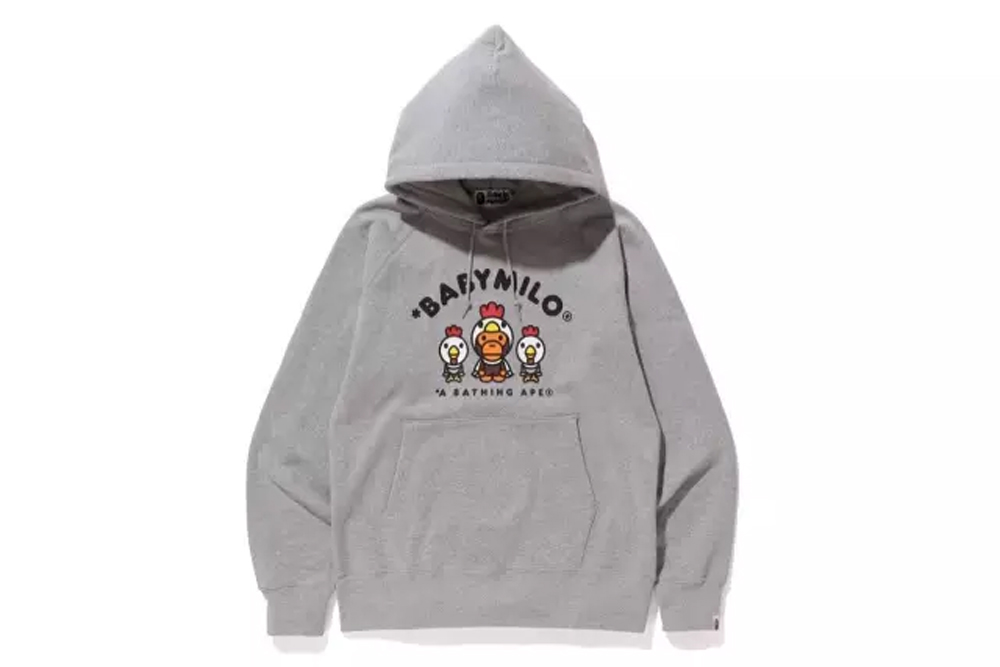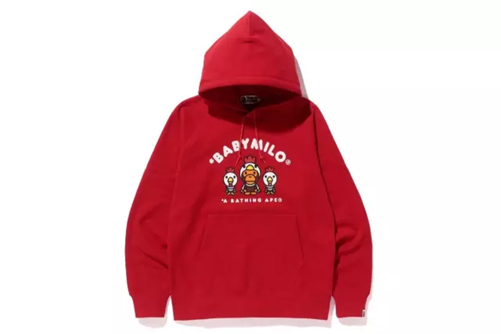Bape在1月14日号发售了“Year of Rooster”鸡年限定系列,卫衣及T恤除了有公鸡形象,Bape的BABY MILO也换上了公鸡服迎接中国新年,看阵势,大概是要率领小鸡出发领红包。一同推出的迷彩唐装也十分抢眼,迷彩唐装有绿迷彩和黄迷彩两色可选,采用一字扣和唐装衣襟设计。