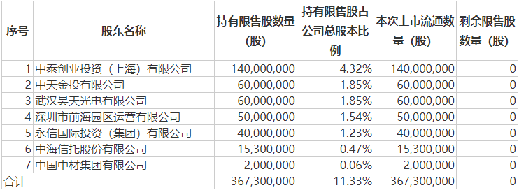 此次信达证券解禁股东共七位,包括中泰创投、中天金投等公司,多为机构投资者,存在一定解禁压力。