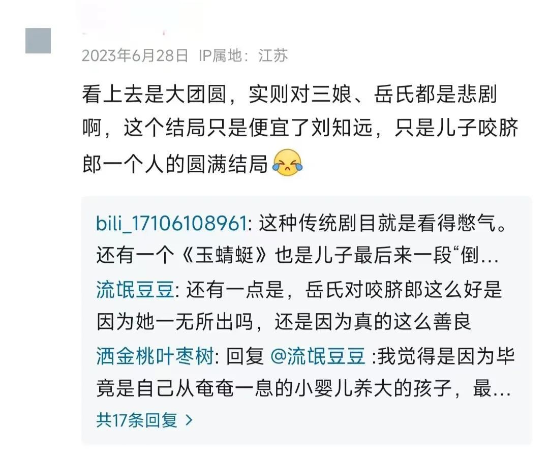 但很多人发现,大量传统剧目里面的情节已然跟不上时代,比如《白兔记》的剧情就被不少观众诟病,说女主李三娘是越剧王宝钏,结局强行大团圆;跳出才子佳人模式,立意较新的《陈三两》,女主的形象中也含带着旧社会妇女贞洁观。