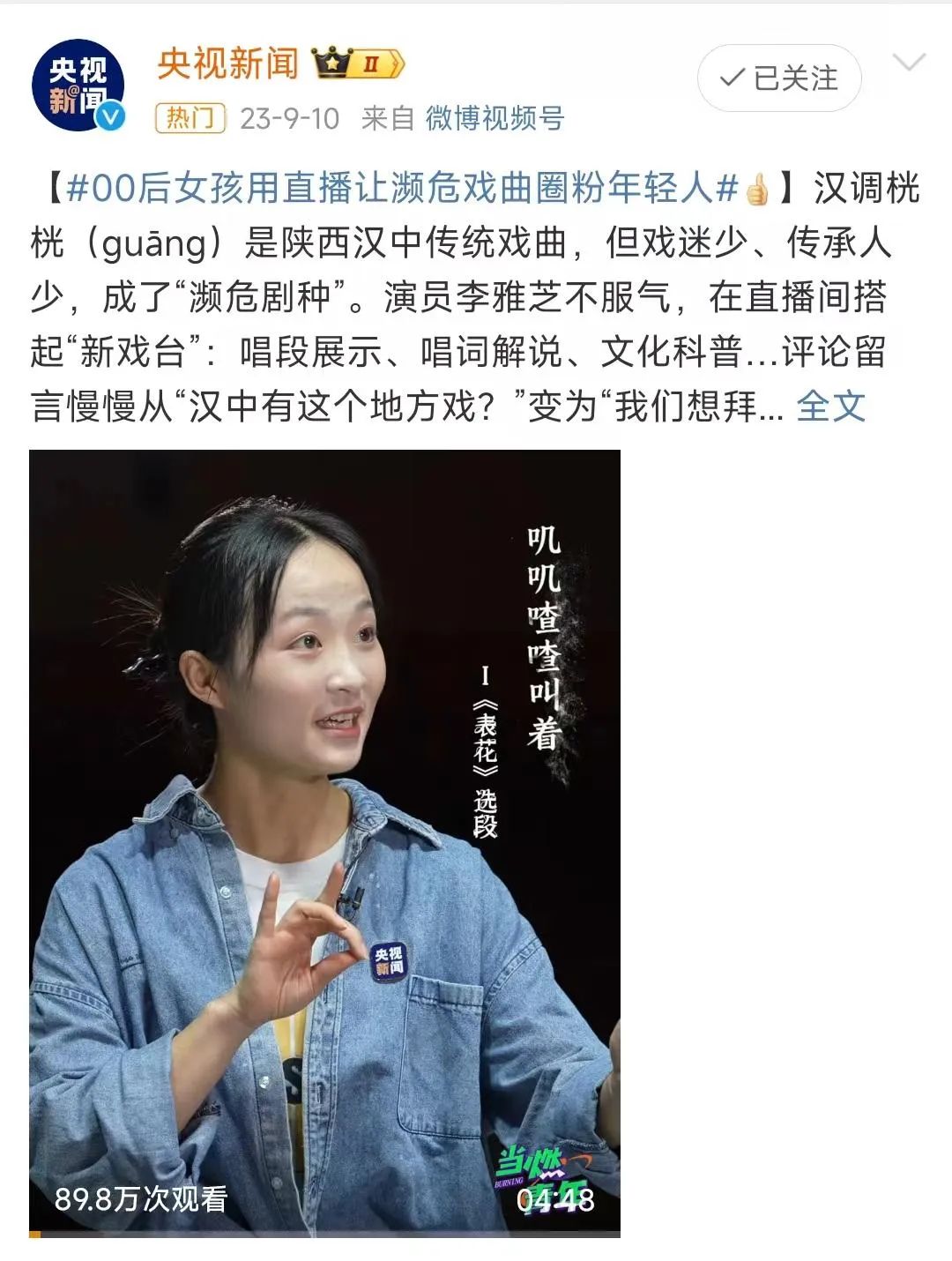 并且演员们的自我展示和与观众的交流并不止停留于舞台上,她们会开直播聊日常、发短视频、发微博,展现青年演员的风貌状态。