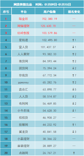 陆金所、网信理财、红岭创投,三家平台已经连续三周保持三甲的成绩。