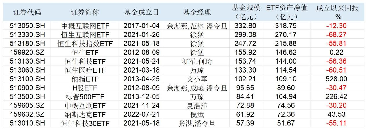 其中,ETF是QDII股票型的主角。截至1月25日,易方达中证海外互联ETF的资产净值为321.72亿元,华夏恒生互联网科技ETF的资产净值为271.17亿元,华夏恒生科技ETF的净值为219.72亿元。