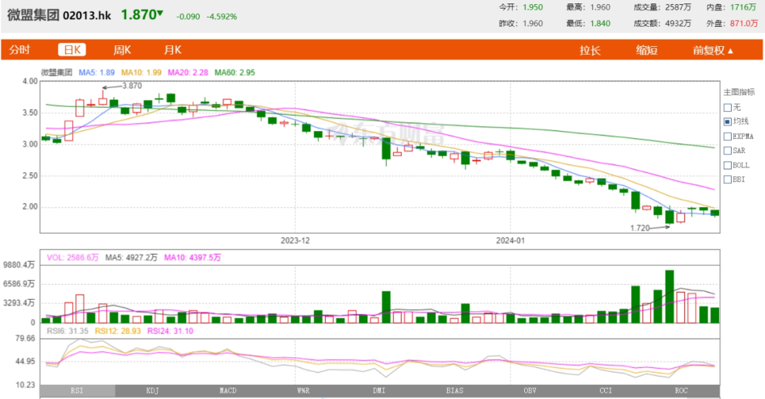 如果拉长时间线来看,微盟股价自2021年2月以来跌幅超九成;这家曾经背靠互联网大树不断成长的独角兽,正逐渐失去资本市场的青睐。