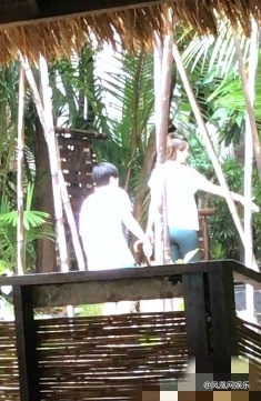 网曝照片来看,俩人钩脖搂腰十分亲近。