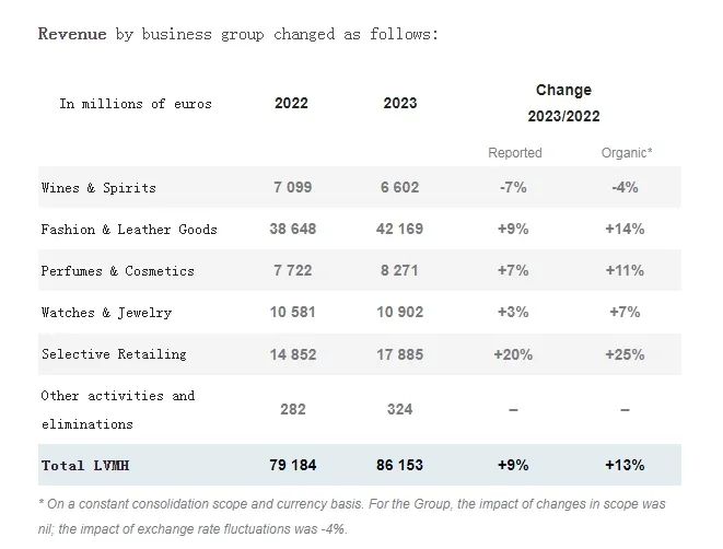 LVMH董事长兼首席执行官Bernard Arnault表示:“尽管这一年受到经济和地缘政治挑战的影响,但我们2023年的业绩体现了我们旗下品牌的非凡吸引力及其激发欲望的能力。集团收入及利润再次录得大幅增长。”