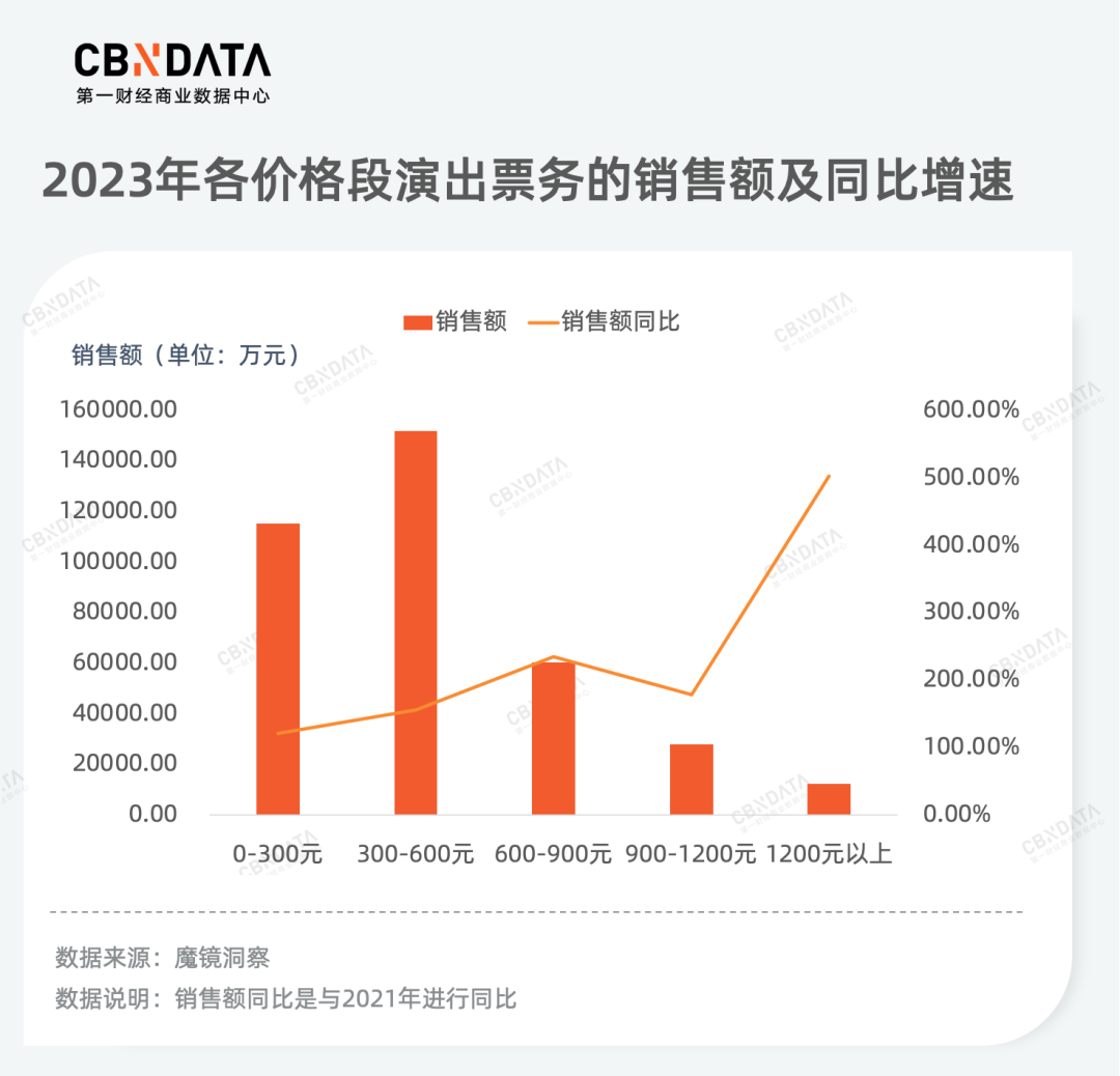 在演出价格方面,300-600元是目前消费的主力价格段。然而,受演出门票上涨与年轻人“报复式”消费等因素的影响,1200元以上的高价票最具潜能。
