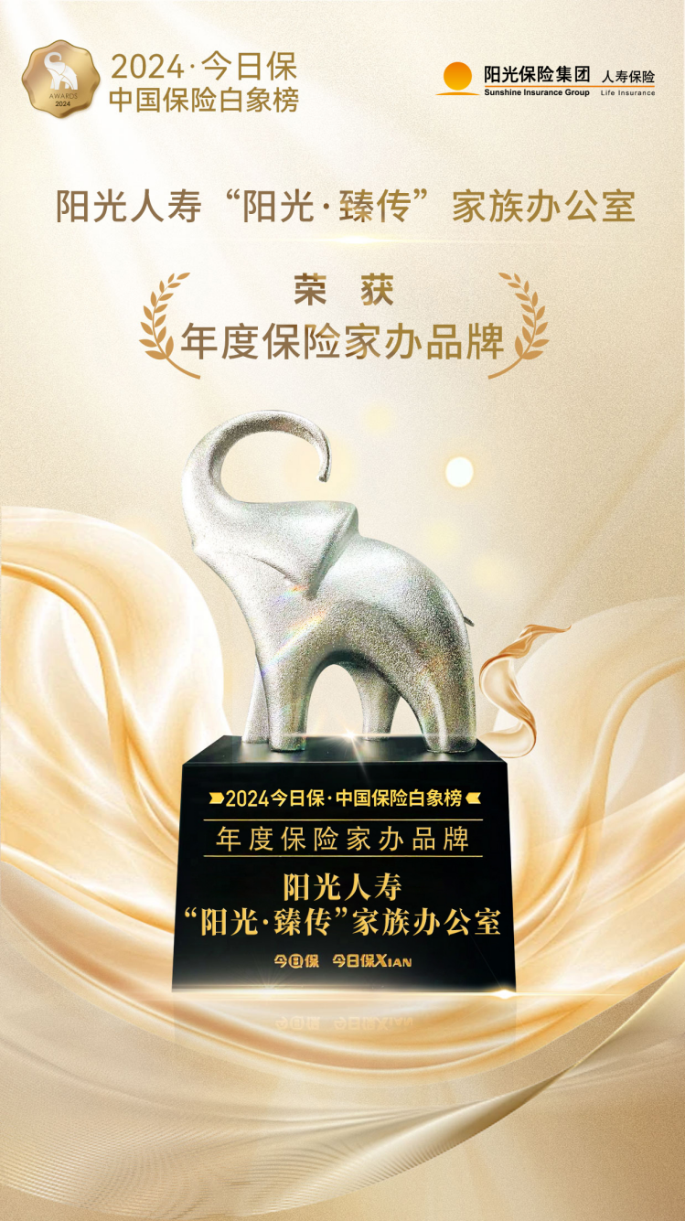 近日,由保险行业资讯平台《今日保》主办的“2023今日保·中国保险白象榜”出炉。阳光人寿旗下“阳光·臻传”家族办公室凭借专业、优秀的客户服务能力荣获“年度保险家办品牌”。