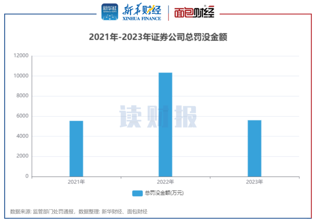 新华财经和面包财经对2023年证券公司的违规处罚数据进行了统计分析,从罚单数量、罚款金额等角度透视证券公司合规情况。