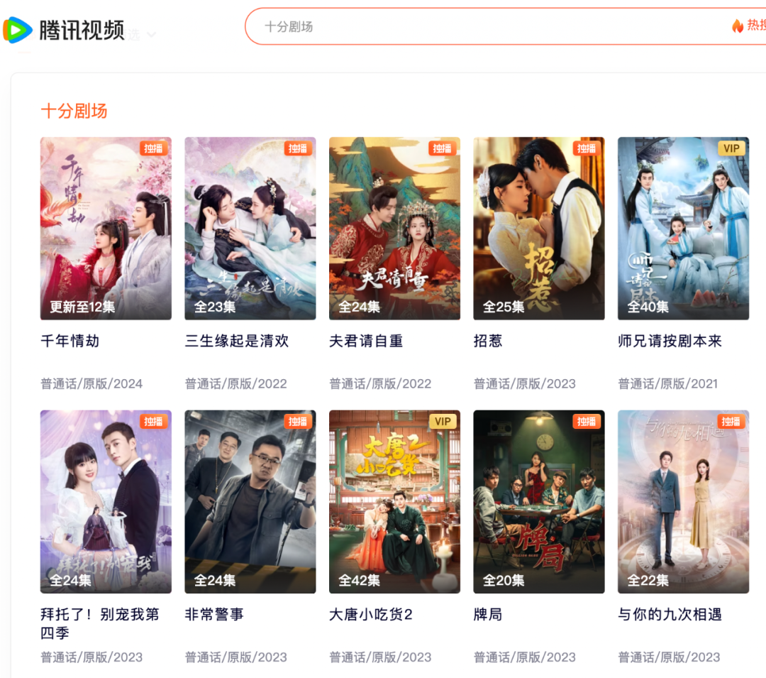对于每一个平台,观众能够记住的往往只有爆款短剧,而不是短剧剧场。例如,很少有腾讯视频用户知道《招惹》是出自于“十分剧场”。目前,“十分剧场”最出圈的两部作品《大妈的世界》与《招惹》面向的则是完全不同的受众人群,这也让“厂牌效应”成为了空谈。