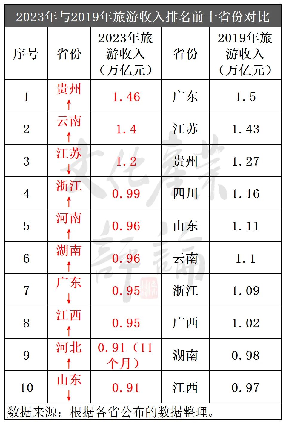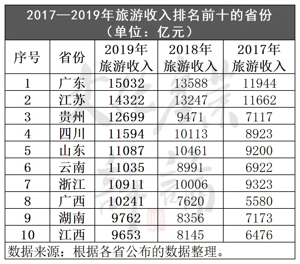 旅游收入:十省突破9千亿、三省超过万亿