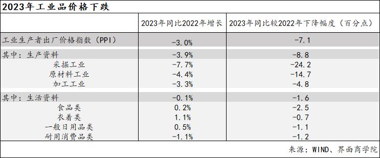 价格下降拖累工业企业营业收入增速下降。2023年,工业品出厂价格下降3%,其中,生产资料价格下降3.9%、生活资料价格下降0.1%。尽管工业物量仍在增长,但工业企业营业收入同比增速因此进一步降至1.1%,较2022年下降4.8个百分点。