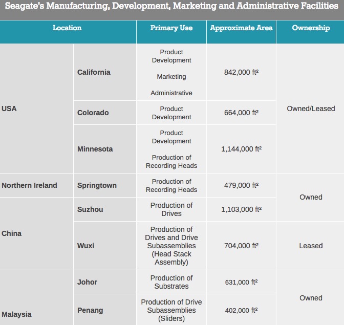 根据一份希捷在全球范围的工厂资料显示,希捷苏州和无锡的占地分别为76000平方米和58000平方米,其中苏州用地为自有,无锡用地为租用。